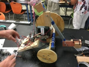 Team members learn how to break problems down into manageable parts and how to tackle each one and find solutions while improving designs and fixing problems as they arise. Safety and sportsmanship are paramount, and the team must turn in an engineering notebook that documents every step of the design, building, and testing process. The best part, in my opinion, is that there is something for absolutely everybody to do; a student can help design the robot using physics calculations, help build it using power tools, take notes and pictures to document the process, or even help advertise and raise funds for the team. Everyone gets to be an important part of the team in one way or another.
